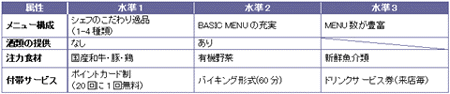 効果測定したい属性・水準を選定し、評価すべき組合せを設定します。