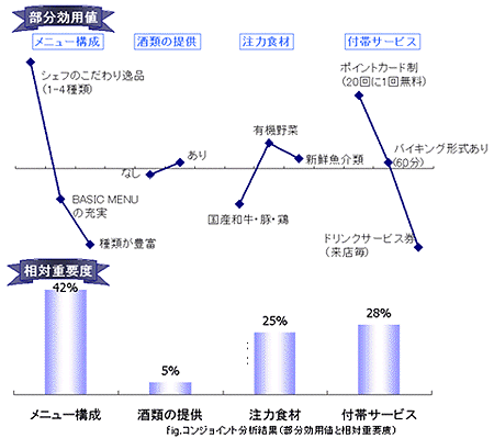 水準の部分効用値、属性の相対重要度などを算出し、結果を分析・ご報告致します。